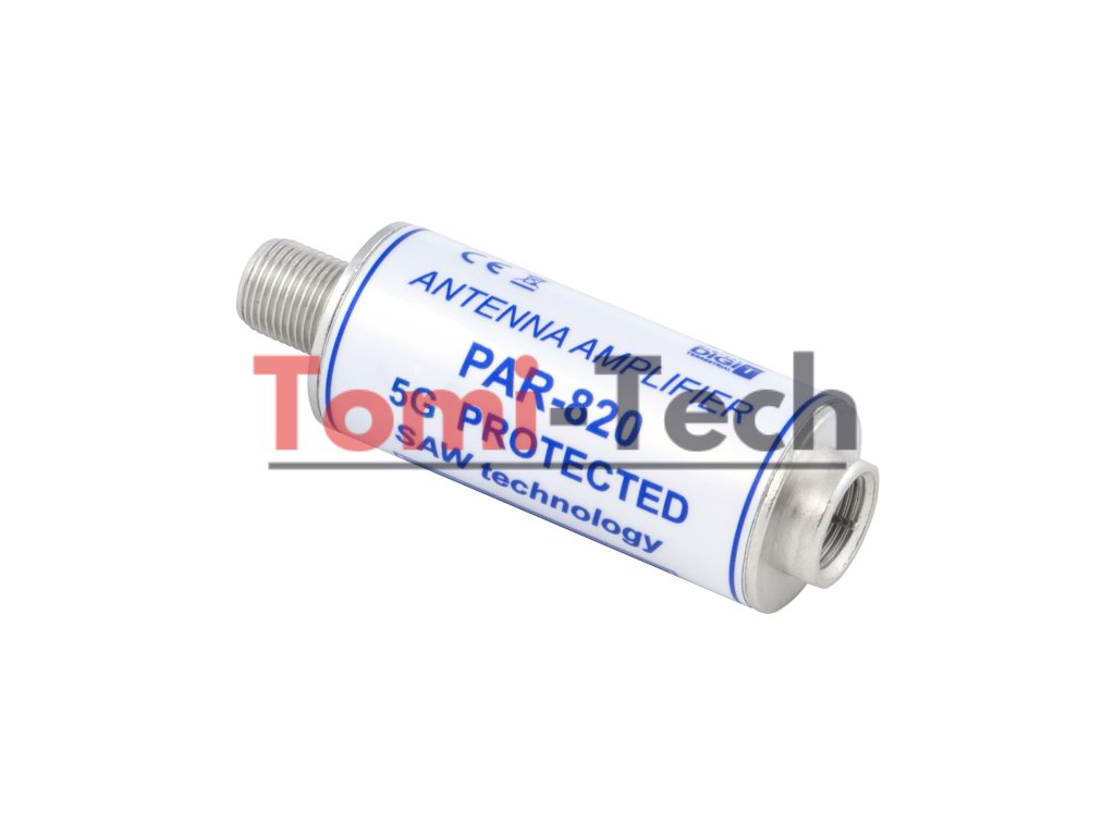 ----------Vlastnosti----------Montáž na vhodné miesto na koaxiálnom kábli alebo priamo na anténu či diplexor, Nízky vlastný šum, Vysoká odolnosť voči intermodulácii, nízka spotreba prúdu, Odolnosť voči vonkajším elektromagnetickým poliam (pevné kovové puzdro), Nízka spotreba prúdu <40 mAPoľská výroba a vývoj----------Technické údaje----------Prevádzkový frekvenčný rozsah: 47-694 MHz, Zisk v priepustnom pásme: 19 dB +/- 2 dB, Zadržiavacie pásmo: 694-862 dB, Zisk v zadržiavacom pásme: 2 dB/700 MHz; -10 dB / 800 MHz Maximálna výstupná úroveň: 104 dBuV Šumové číslo: 4,0 dB Vstupná/výstupná impedancia: 75 Ohm / 75 Ohm Napájanie: 5-24 V DC Spotreba prúdu: 40 mA Typ vstupno-výstupného konektora: F RTKový TV predzosilňovač PAR-820 5G PROTECTED je určený na zosilnenie slabých pozemných televíznych signálov prijímaných pasívnou pozemnou anténou. Vďaka použitej technológii SAW predzosilňovač vo väčšine prípadov eliminuje signály 5G/LTE bez odstránenia signálov DVB-T2.Dodatočné parametre