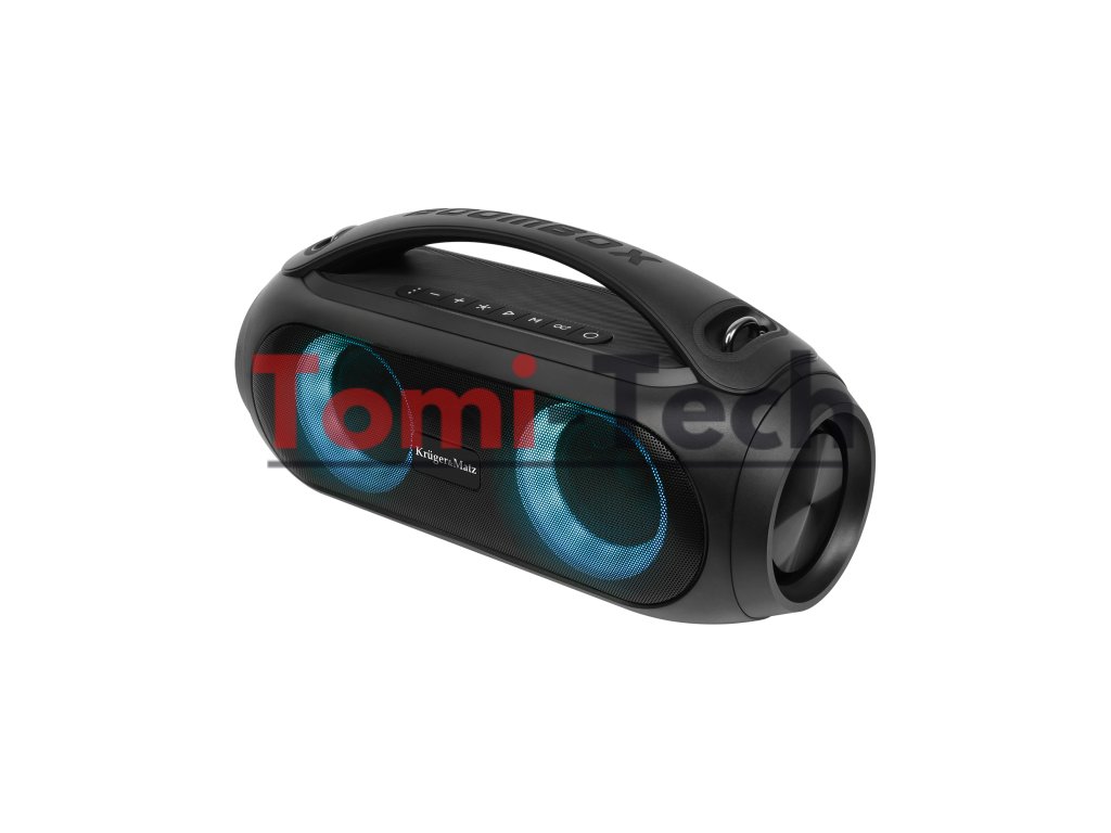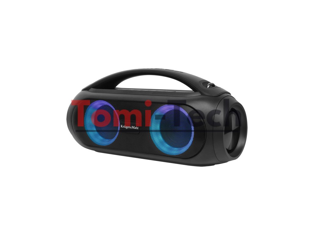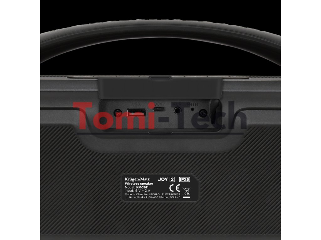 Bluetooth reproduktor Kruger&Matz Joy 2 je vybavený 2 stredovými reproduktormi meniče a 1,5-palcový výškový reproduktor s celkovým výkonom 20 W. Okrem toho má tento model dve pasívne membrány, ktoré zdôrazňujú zvuk basov.