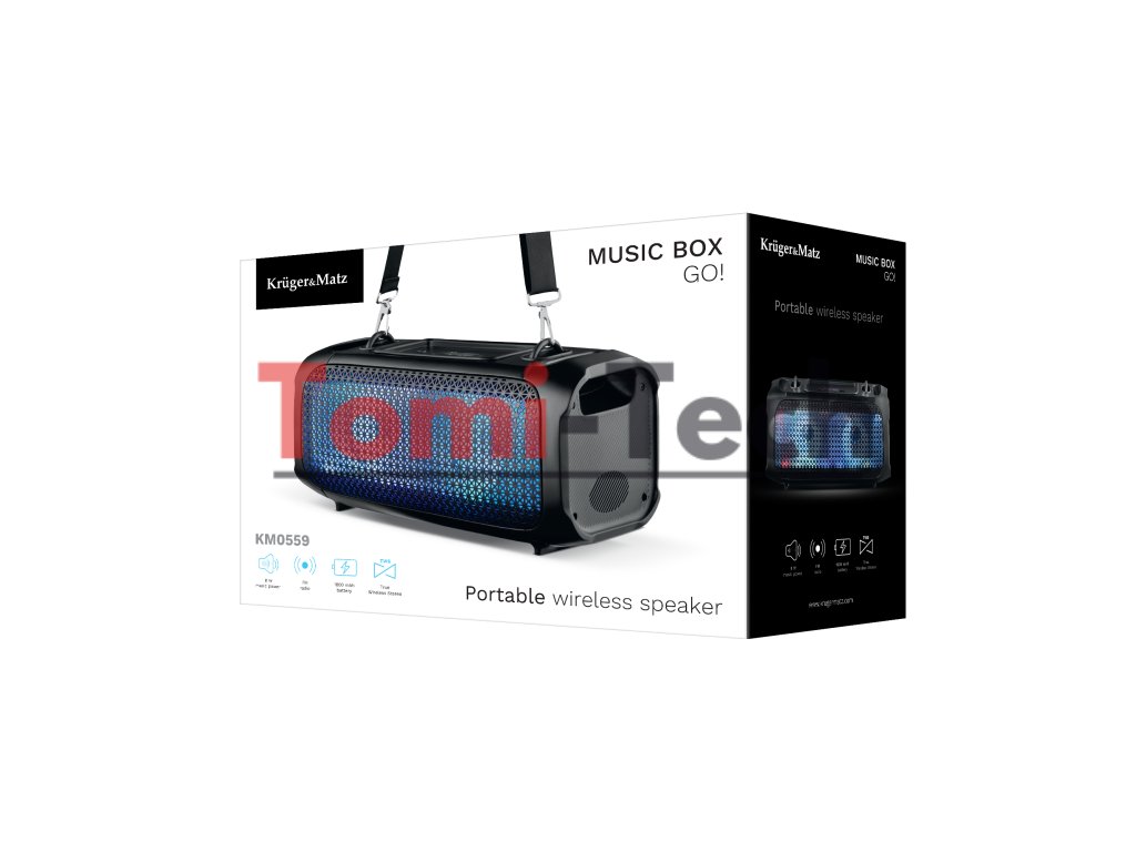 Vyberte si ten správny reproduktor, ktorý nielenže umocní hudobnú atmosféru počas stretnutí s priateľmi, ale dokáže takéto stretnutie premeniť aj na poriadnu párty. LED reproduktor Kruger&Matz Music Box Go! je ľahké a kompaktné zariadenie, ktoré si môžete ľahko vziať so sebou k ohňu alebo na návštevu priateľov. To všetko vďaka praktickému popruhu, ktorý je súčasťou balenia zariadenia.