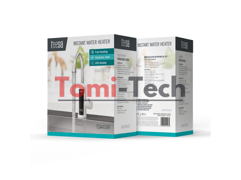 Inštalácia ohrievača vody Teesa je skutočne jednoduchá a nevyžaduje žiadne veľké renovačné práce. Stačí namontovať kohútik na dosku, zapojiť ho a máte hotovo! Vďaka svojmu modernému dizajnu sa perfektne hodí do každej kuchyne a nezaberie veľa miesta. Je to tiež ideálna voľba pre letné domy alebo kuchynky.