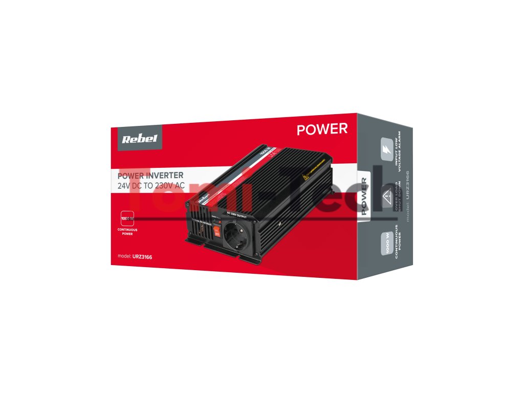 Menič REBEL 24V/230V 1000W so zásuvkou typu F