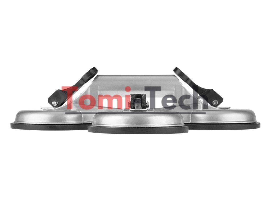 Trojitá prísavka na sklo, 150 kg, monolitické hliníkové telo, odolné hliníkové západky. Určená pre bezpečnú manipuláciu a montáž rôznych prvkov, ako sú sklo, dlaždice, kamenina, plech, laminátové dosky a mnoho ďalších.Dodatočné parametre