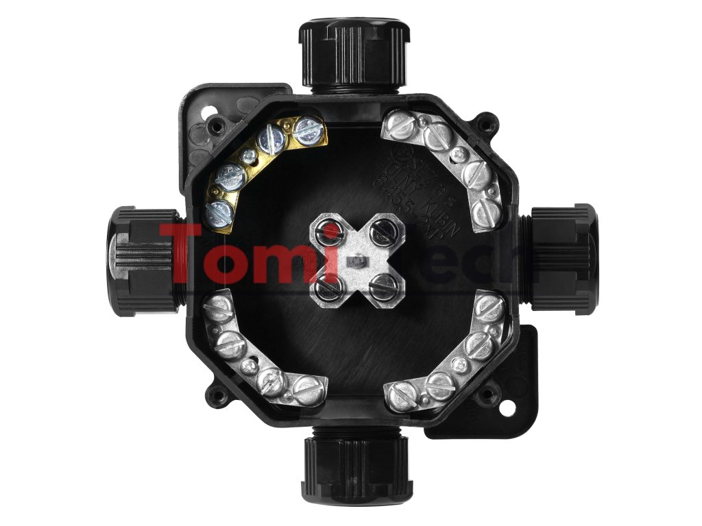 Hermetická krabica IP67, 4 vývodky, 144x144mm, čiernaDodatočné parametre