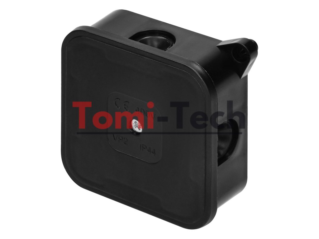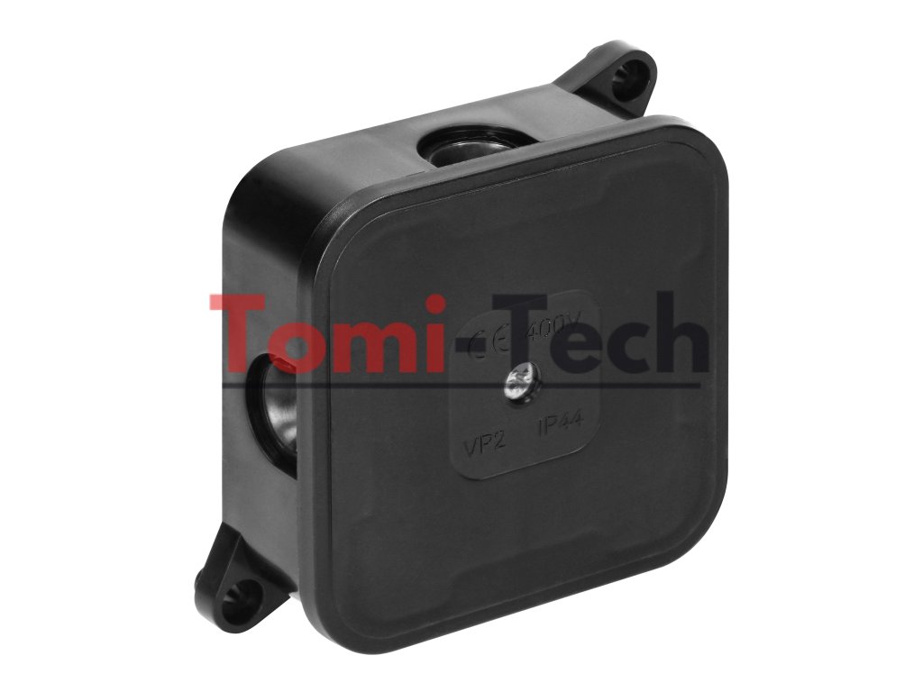 Rozvodná krabica ECO, IP44, 400V, 4 gumené priechodky, 85x85x35mm, čierna, 60 ks.