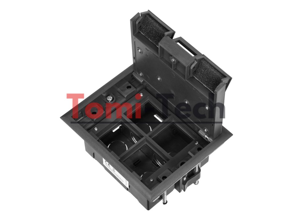 Podlahová krabica pre modulárne zásuvky 4 x 45x45mm alebo 8 x 22,5x45mm, kryt: vlastný materiál, čiernaDodatočné parametre