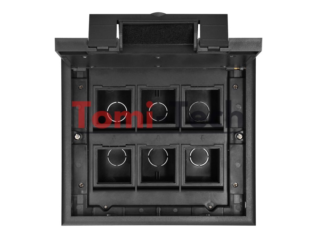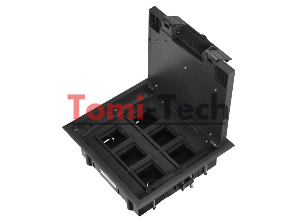 Podlahová krabica pre modulárne zásuvky 6 x 45x45mm alebo 12 x 22,5x45mm, kryt: plast, čiernyDodatočné parametre
