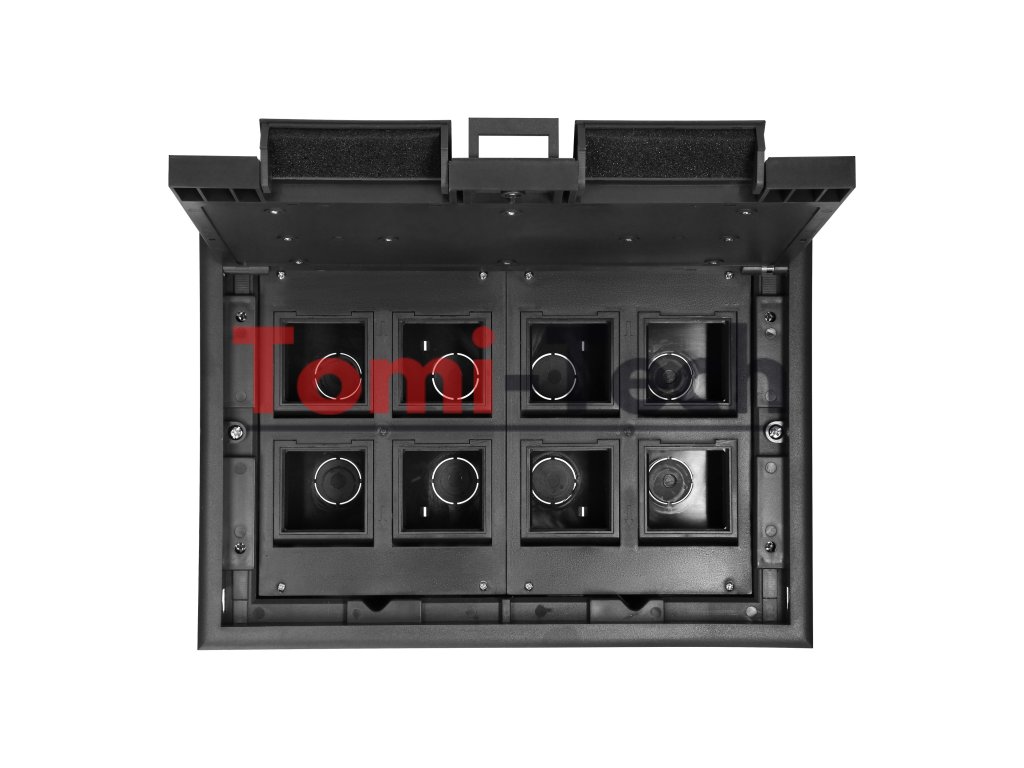 Podlahová krabica pre modulárne zásuvky 8 x 45x45mm alebo 16 x 22,5x45mm, kryt: vlastný materiál, čiernaDodatočné parametre
