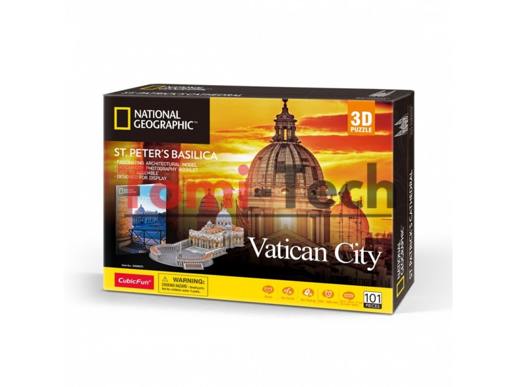 3D puzzle Baziliky sv. Petra vo Vatikáne. Balenie obsahuje 101 dielikov puzzle vyrobených zo špeciálneho penového materiálu. Diely puzzle sú očíslované, ryhované a umiestnené na listoch. Jednoducho vytlačte dieliky z listu bez použitia sily a zostavte ich podľa priloženého návodu, bez použitia lepidla alebo špeciálneho náradia.