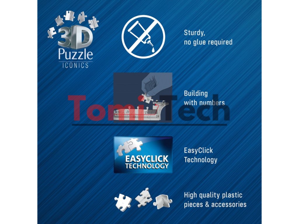 Vďaka našej technológii Easy Click do seba plastové dieliky puzzle dokonale zapadajú. Vytvorte úžasné 3D objekty z individuálne tvarovaných a flexibilných dielikov puzzle - bez lepidla!