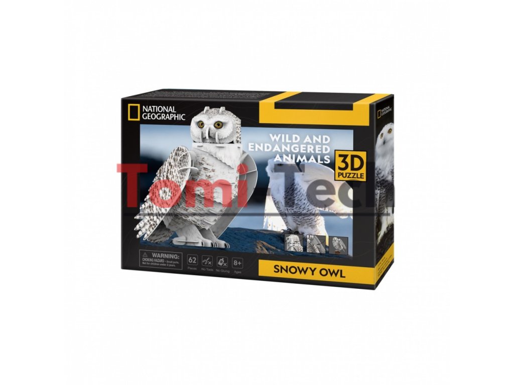 Sada 3D puzzle s ohrozenými druhmi zvierat. Zostaviteľný model snežnej sovy. Konštrukcia pozostáva zo 62 dielikov. Toto 3D puzzle je vyrobené z vopred narezaného papiera a penovej lepenky, ktorá je bezpečnejšia ako kov a drevo, realistickejšia a ľahšia ako plast. Ilustrovaný návod umožňuje mladým staviteľom postaviť si modely sami. Obsahuje aj zaujímavé fakty o samotnom zvierati. Začnite svoje dobrodružstvo a zozbierajte celú zbierku ohrozených zvierat!