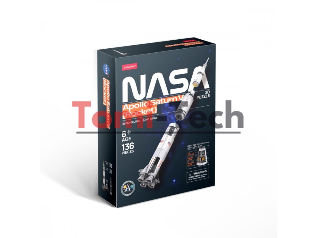 Táto sada s licenciou NASA zobrazuje najznámejšie dopravné prostriedky a vesmírne objekty. Raketa Apollo Saturn V sa skladá zo 136 dielikov, ktoré po zostavení umožňujú vytvoriť konštrukciu s rozmermi 35,5 x 17 x 81,5 cm. Toto 3D puzzle je vyrobené z vopred narezaného papiera a penovej lepenky, ktorá je bezpečnejšia ako kov a drevo, realistickejšia a ľahšia ako plast. Ilustrovaný návod umožní mladým staviteľom postaviť si model sami.
