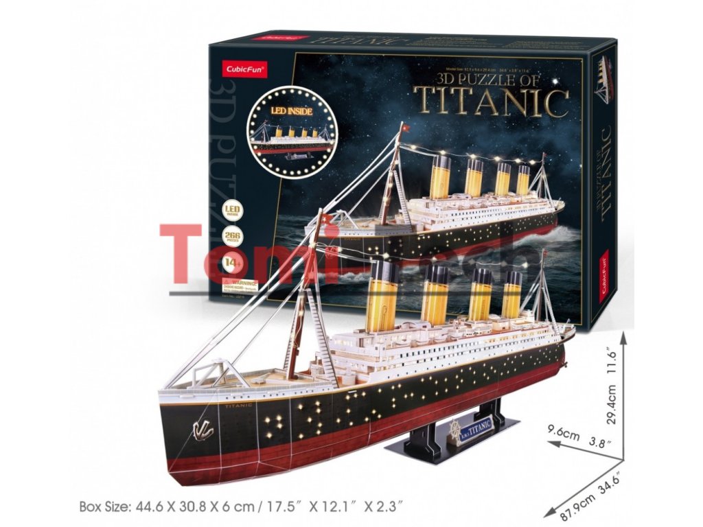 Titanic LED je nový 3D model puzzle s osvetleným trupom. Loď sa skladá z 246 dielikov a po zostavení meria 87,9 x 9,6 x 29,4 cm. Na zostavenie nie je potrebné lepidlo, nožnice ani iné špeciálne nástroje. Všetky dieliky puzzle sú očíslované a skórované a je k dispozícii návod na zostavenie. Po zostavení majú puzzle vysokú vzdelávaciu hodnotu a predstavujú skvelý doplnok k hernej sade.