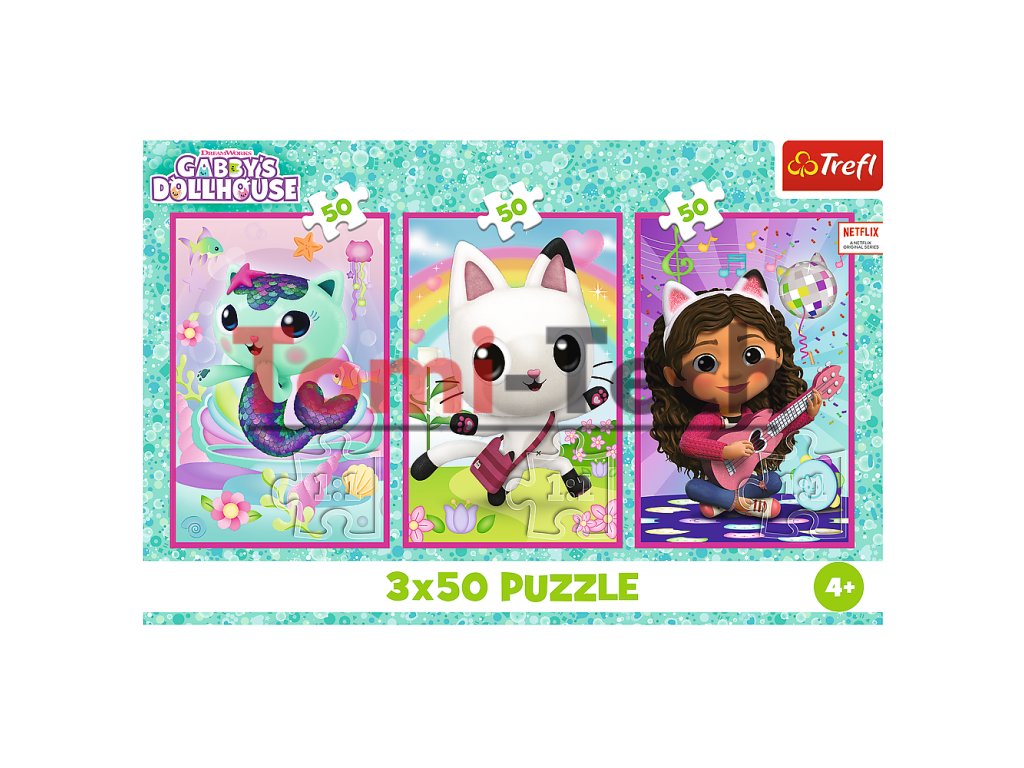 Puzzle 3x50 - Zoznámte sa s Gabby a mačiatkami Gabbyin domček pre bábiky Trefl 34876
