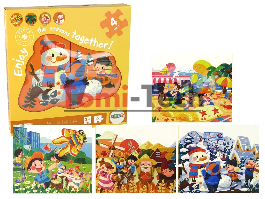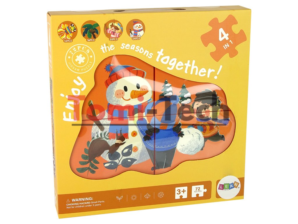 Fascinujúca sada puzzle pre deti - "4 v 1 Puzzle: 4 ročné obdobia". Táto úžasná sada pozostáva zo 72 puzzle, ktoré zaručujú veľa hodín radosti a rozvíjajúcej zábavy.
