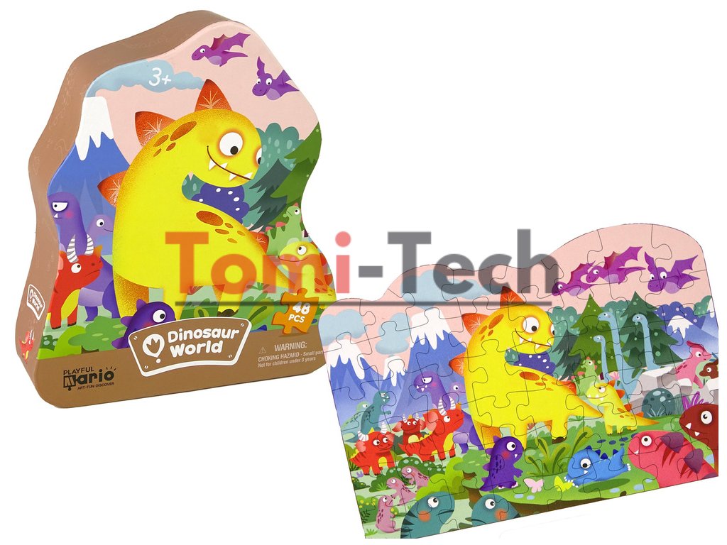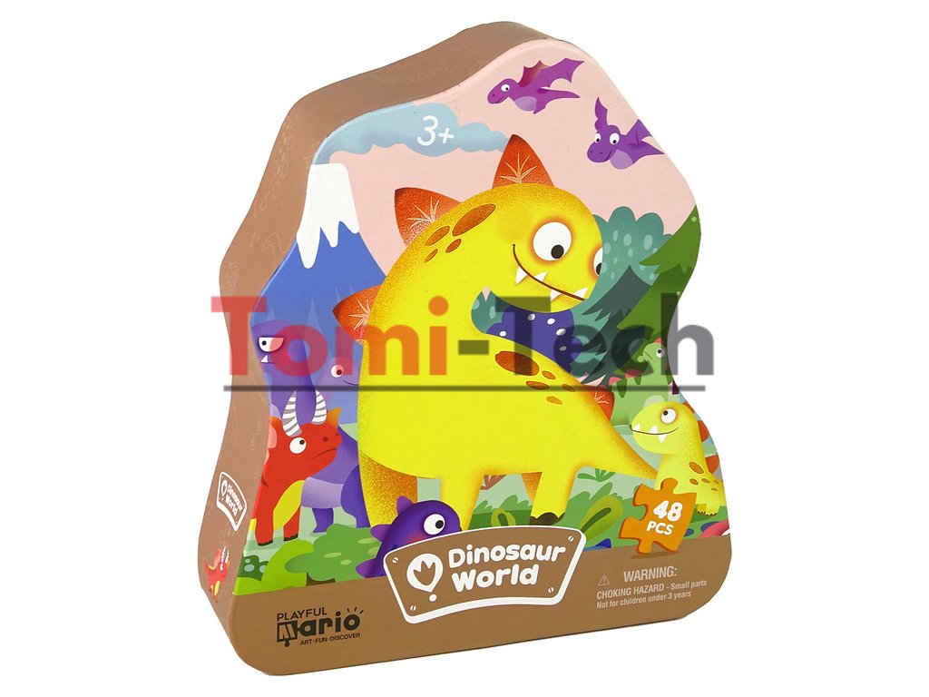 Toto je sada 48 dielikov puzzle určená pre deti staršie ako 3 roky. Po zložení tohto fascinujúceho puzzle získate obrázok s pôsobivými rozmermi 50 cm x 34 cm, ktorý zobrazuje údolie priateľských dinosaurov.