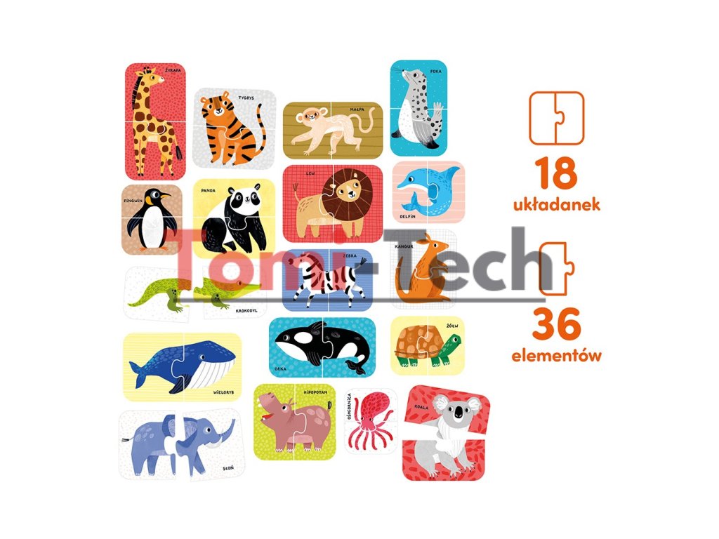 Táto vzdelávacia sada pozostáva z 18 veľkých puzzle. Sú perfektné ako prvé puzzle s tradičnými spojmi alebo ako nástupca kolekcie. Krásne ilustrácie zobrazujú divé zvieratá z celého sveta. Deti ich milujú! Hra s puzzle pomáha rozvíjať koordináciu ruka-oko a bystré oko a inšpiruje k učeniu sa nových slov a vedomostí. Pripravte sa na divokú zábavu!