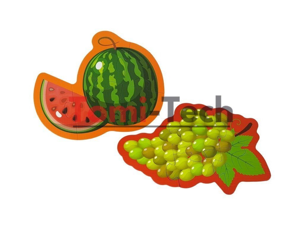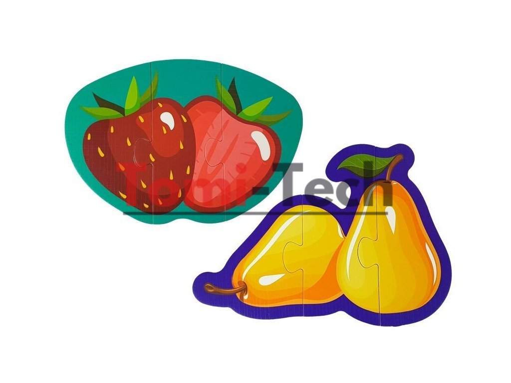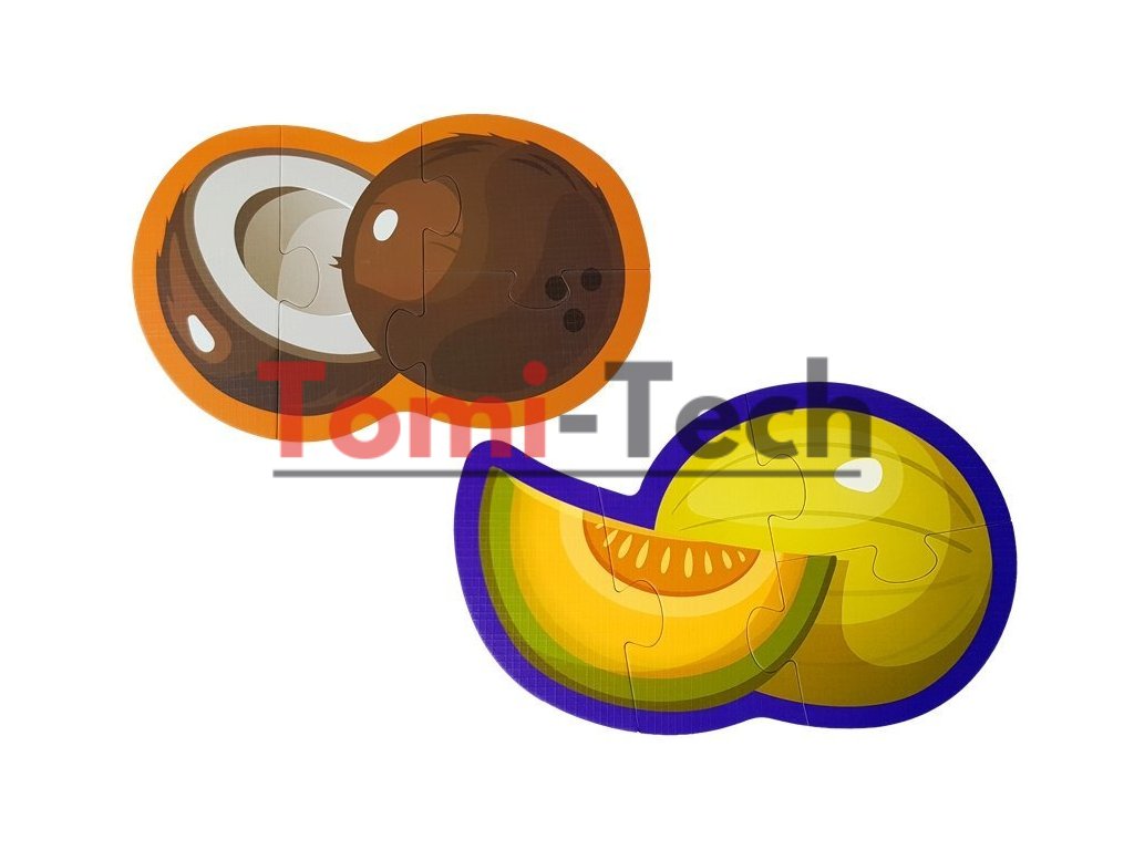 Všetky puzzle obsahujú ovocie, takže sa vaše dieťatko naučí jeho názvy a vzhľad. Na zadnej strane puzzle si všimnete, že názvy ovocia sú napísané v angličtine.
