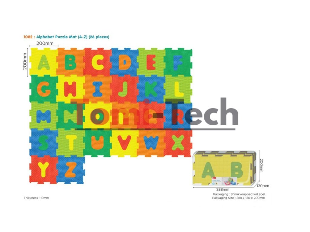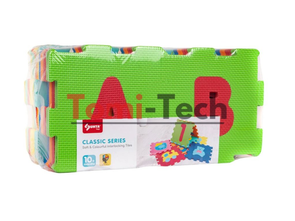 Puzzle je vyrobené z mäkkej a na dotyk príjemnej peny, veľmi ľahko sa udržiava v čistote, stačí ich utrieť vlhkou handričkou. Súprava pozostáva z 26 dielikov puzzle, z ktorých si môžete na podlahu vyskladať podložku. Puzzle majú odnímateľné čísla a písmená, vďaka ktorým sa dieťatko naučí spájať tvary.
