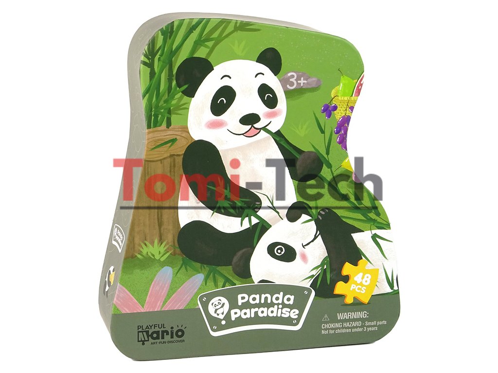 Toto je sada 48 dielikov puzzle určená pre deti staršie ako 3 roky. Po zložení tohto fascinujúceho puzzle získate obrázok s pôsobivými rozmermi 50 cm x 34 cm, ktorý zobrazuje priateľské pandy obklopené bambusom.