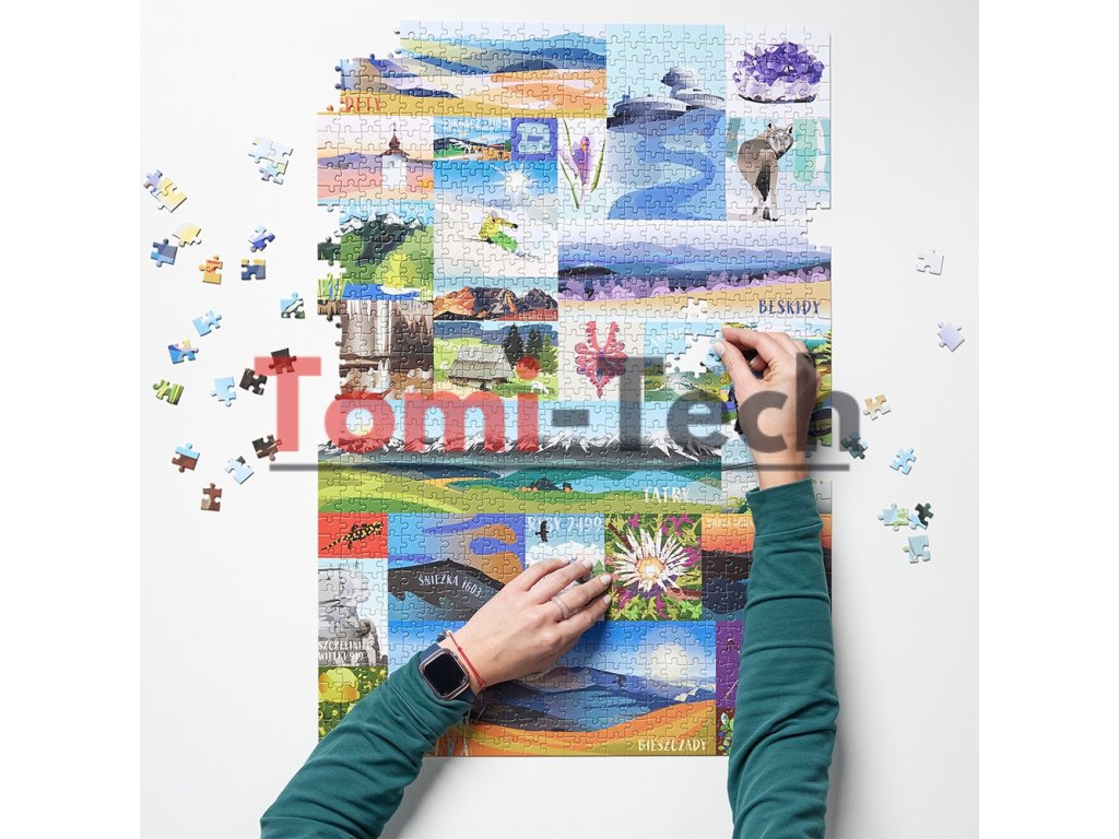 Puzzlove Poľské hory je viac než len 1000-dielne puzzle. Zobrazuje vybrané vrcholy pohoria a detaily jasne spojené s časom stráveným v poľských horách. Je to pozvánka na cestu plnú spomienok a snov o ďalších expedíciách. Je to spôsob, ako relaxovať a oddýchnuť si s tými, ktorí zdieľajú vášeň pre hory. Najvyššia kvalita spracovania a krásne ilustrácie robia z tohto puzzle perfektný darček pre nadšencov prírody, turistiky a horolezectva.