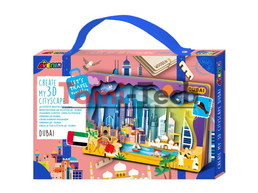 Chcete navštíviť Dubaj bez dlhej cesty? Táto sada drevených puzzle od Avenir vám umožní vytvoriť úžasnú 3D panorámu mesta. Jednoducho poskladajte krásne ilustrované drevené dieliky dohromady – žiadne lepidlo, žiadny neporiadok, žiadne stratenie! Každý dielik do seba zapadá ako mávnutím čarovného prútika a premení sa na krásnu panorámu mesta s jej najznámejšími pamiatkami. Podrobný návod vás prevedie skladaním puzzle a vytvorí úžasný výhľad na mesto. Je to perfektný darček pre každého, kto miluje puzzle alebo len skvelé suveníry! Vhodné pre deti od 6 rokov.