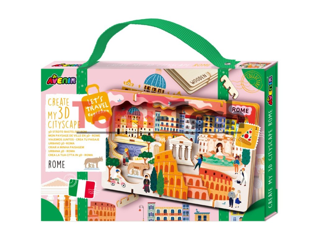 Chcete navštíviť Rím bez dlhej cesty? Táto sada drevených puzzle od spoločnosti Avenir vám umožní vytvoriť úžasnú 3D mestskú krajinu. Jednoducho zostavte drevené dieliky zdobené krásnymi ilustráciami – bez lepidla, bez neporiadku, bez stratenia! Každý dielik do seba zapadá ako mávnutím čarovného prútika a premení sa na krásnu mestskú krajinu s najznámejšími pamiatkami mesta. Podrobný návod vás prevedie zostavením puzzle a vytvorí úžasný výhľad na mesto. Je to perfektný darček pre každého, kto miluje puzzle alebo len skvelé suveníry! Vhodné pre deti od 6 rokov.