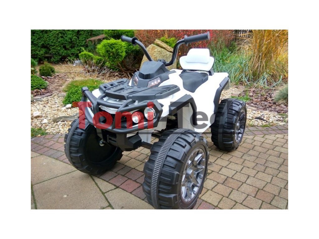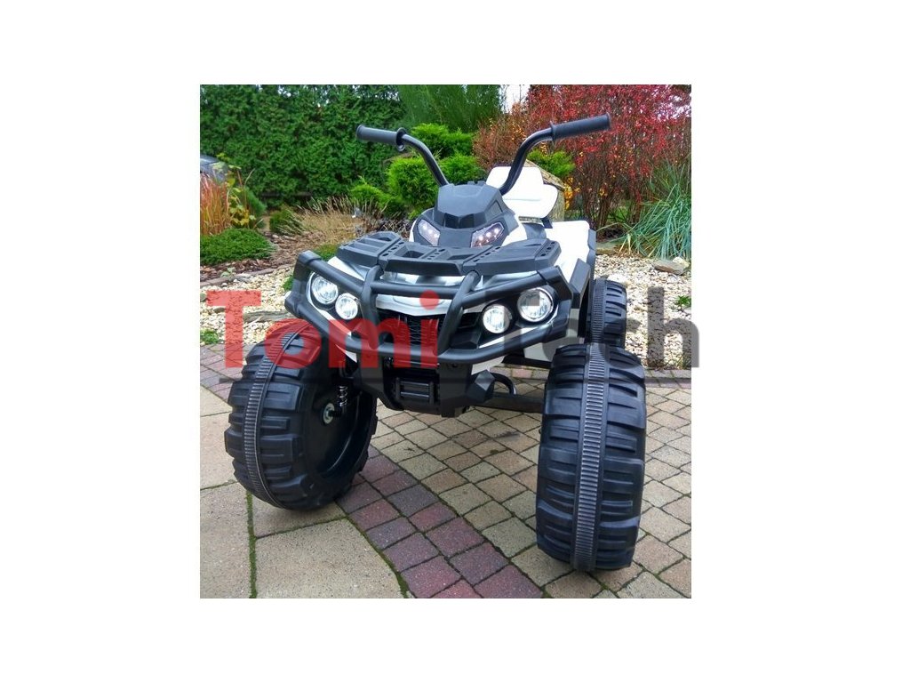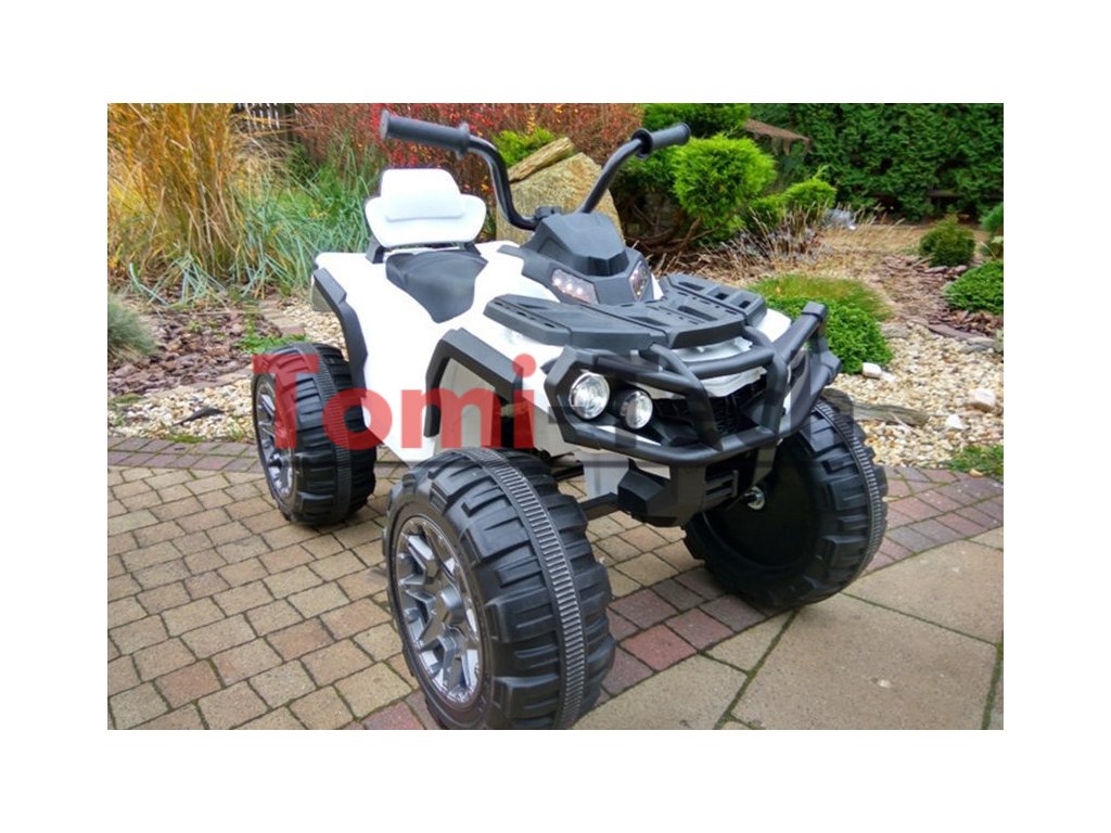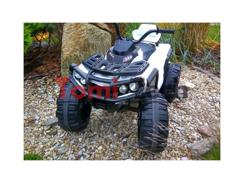 Akumulátorová štvorkolka bielaVeľká, výkonná a hlavne vyrobená z kvalitného plastu. Vozidlo je navrhnuté v modernom terénnom štýle a uspokojí chúťky najmenších motoristických nadšencov. Prezentovaná výbava sa vyznačuje chrómovými prvkami, mäkkými, koženými prvkami a tlmičmi, ktoré uľahčujú jazdu po nerovnom teréne. Štvorkolka má vstup na USB, MP3 a SD kartu, ale je možné zapnúť aj FM rádio.
