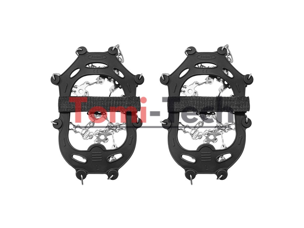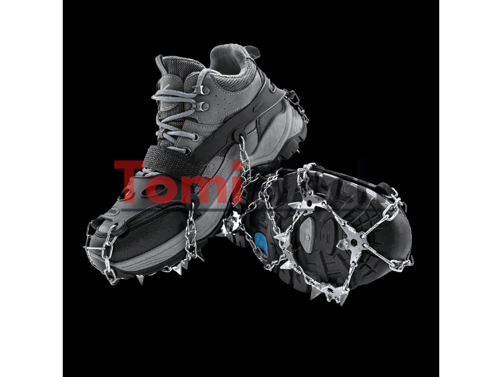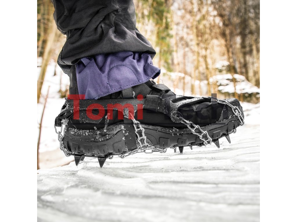 Tieto Mačky sú vybavené deviatimi oceľovými hrotmi s výškou 14 mm, ktoré poskytujú vynikajúcu trakciu na klzkom povrchu. Hroty a reťaze sú vyrobené z nehrdzavejúcej ocele, čo zaisťuje odolnosť proti korózii a dlhú životnosť. Silikónový popruh je flexibilný a prispôsobí sa rôznym veľkostiam topánok, čím zaisťuje stabilitu a pohodlie.