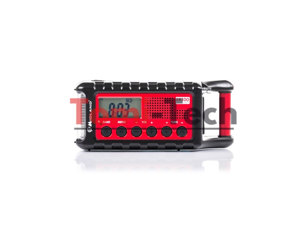 Núdzová rádiostanica Midland ER300 s dynamom a solárnou batériou s kapacitou 2600 mAh