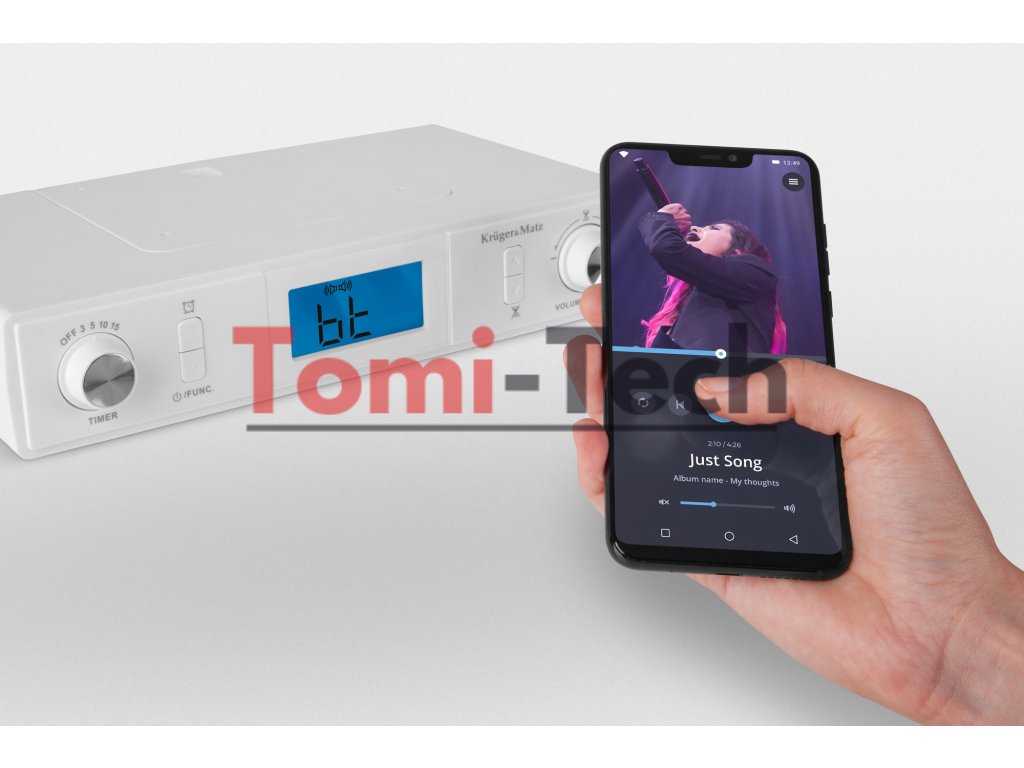 Práca v kuchyni bude oveľa príjemnejšia, keď budete mať pri sebe hudbu. Zapnite si teda kuchynské rádio Kruger&Matz KM 817 a počúvajte svoje obľúbené rozhlasové stanice. Zariadenie je tiež vybavené rozhraním Bluetooth, ktoré umožňuje prehrávať zoznam skladieb z telefónu.