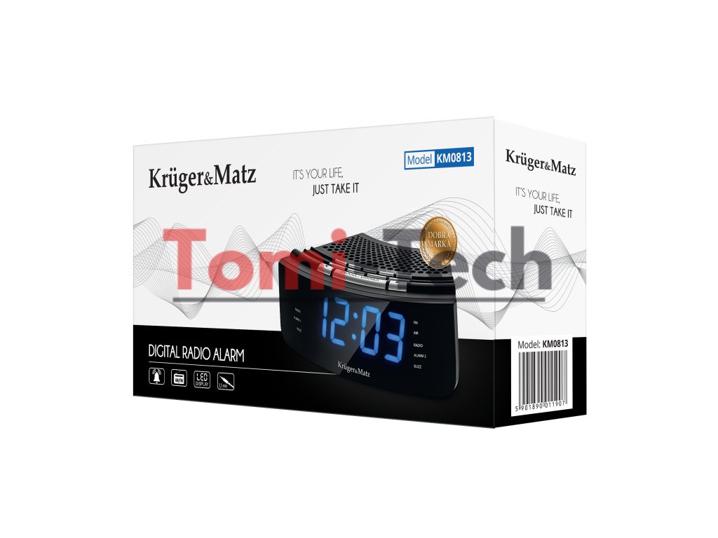 KM 813 je zariadenie, ktoré môže fungovať ako rádio aj budík. Jeho obrovskou výhodou je veľký, ľahko čitateľný displej, ktorého jas je možné nastaviť podľa vašich potrieb. Možnosť nastaviť si rozhlasovú stanicu namiesto klasického budíka znamená, že sa vždy môžete zobudiť na hudbu, ktorá sa vám páči. Stáva sa vám niekedy, že si budík vypnete a znova zaspíte? Tí, ktorí majú často problémy s prebúdzaním sa ráno, určite ocenia funkciu odloženia budenia.
