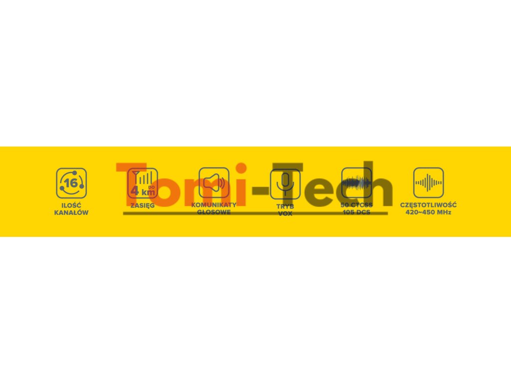 Vysielačka Rebel pracuje v pásme PMR, t. j. využíva rádiové vlny s frekvenciou až 450 MHz. Vďaka 16 dostupným kanálom zariadenie zabraňuje rušeniu z iných rádií a máte zaručené súkromie počas konverzácie.