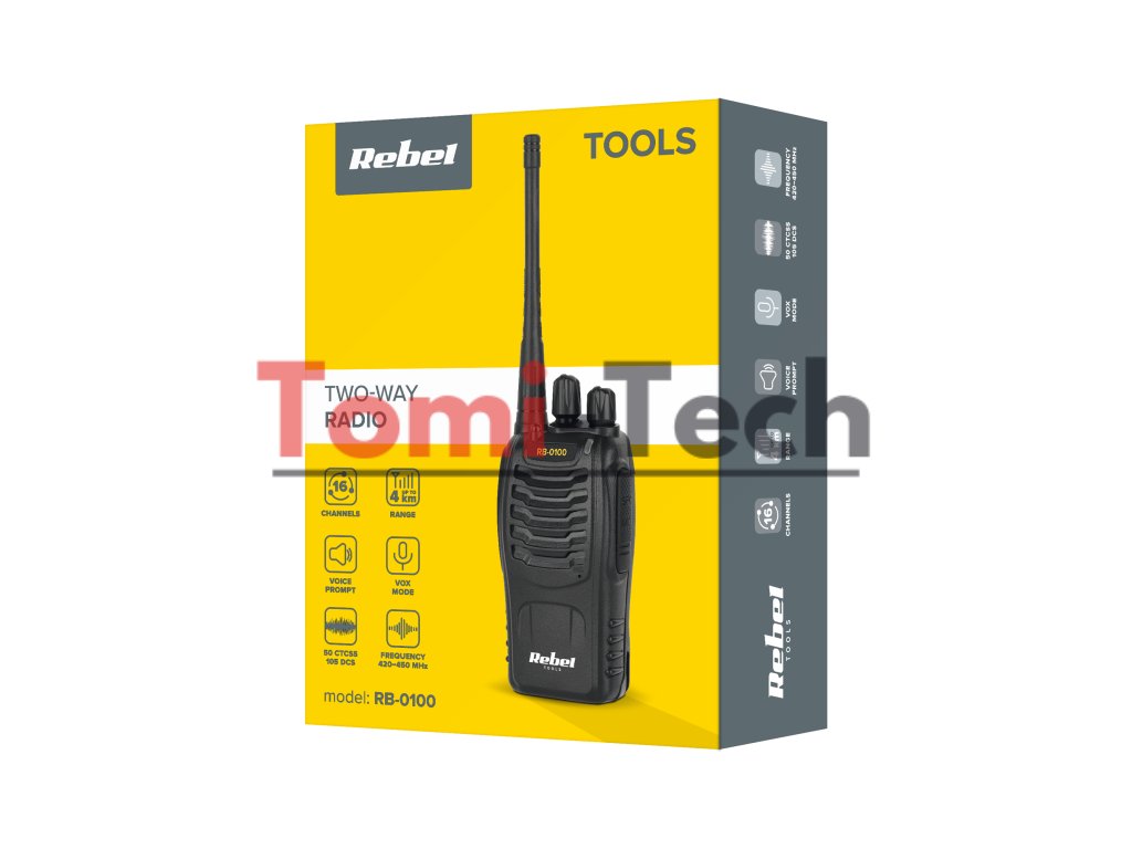 Rebel RB-100 bude fungovať ako vysielačka na stavbách, v horách, na bicykli a všade tam, kde potrebujete byť v neustálom kontakte so svojimi spoločníkmi. Vďaka vstavanému LED svietidlu sa nebudete báť nočných dobrodružstiev!