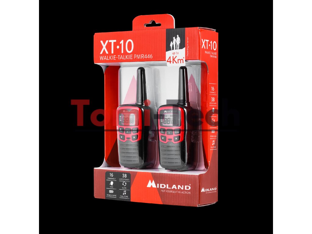Vlastnosti: Výber 16 kanálov, umlčovač šumu, zámok klávesnice, selektívny zámok CTCSS, VOX umožňuje aktivovať hlasový prenos bez stlačenia tlačidla, Scan je funkcia cyklického vyhľadávania kanálov, volací tón, úspora energie, indikátor stavu batérie, sada obsahuje: 2 rádiostanice XT-10, 2 spony na opasokDodatočné parametre