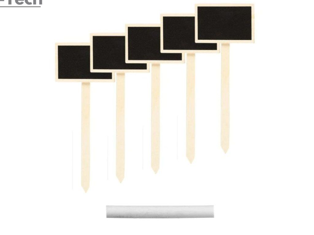 Dosky VERTO 15G460 s 5 kusmi rastlín sú vyrobené z drevenej preglejky. V súprave sa nachádza 5 kusov tanierov s čiernym povrchom a kriedou na popisovanie. Celková dĺžka jednej tabuľky w je 19 cm a šírka 7,5 cm. Vďaka špicatému hrotu je možné tabuľku ľahko umiestniť do zeme.