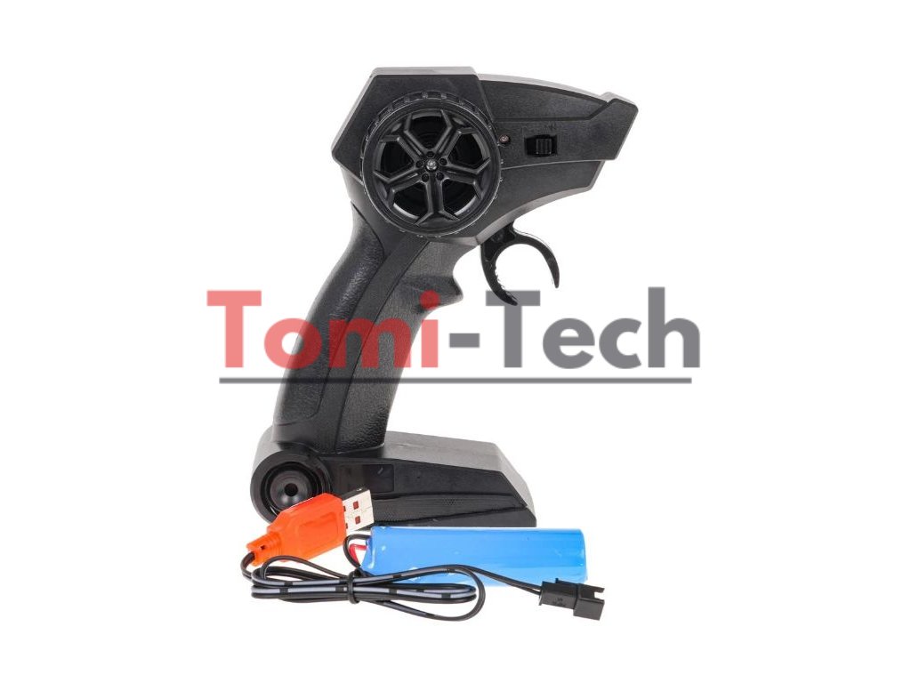 Kovový pásový vozík Rock Shake v mierke 1:14, diaľkovo ovládaný s pohonom všetkých štyroch kolies, je určený pre deti od 6 rokov. Veľké gumové, protišmykové pneumatiky a pružinové odpruženie umožňujú vozidlu ľahko prekonať akýkoľvek povrch. Autíčko je vyrobené z kvalitných materiálov a má kovové telo, vďaka čomu je odolné.Motor použitý vo vozidle umožňuje vysokú rýchlosť.auto je napájané 3,7 V 1200 mAh batériou (súčasť balenia)diaľkové ovládanie je napájané 2 x AA 1,5 V batériami (batérie nie sú súčasťou).