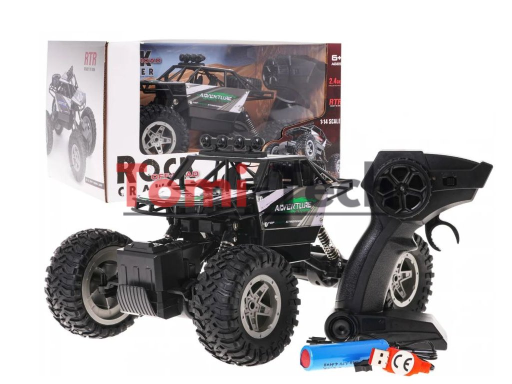 Špecifikácia:mierka 1:14,kovové telo,antikolízny dizajn,vysoko odpružené odpruženie,pohon všetkých štyroch kolies 4x4,nastavenie otáčania,veľké gumené pneumatiky s dezénom,dosah až 50 metrov,lezie cez prekážky,jazdí vo všetkých smeroch, dopredu, dozadu, doprava a doľava,2,4 GHz diaľkové ovládanie.