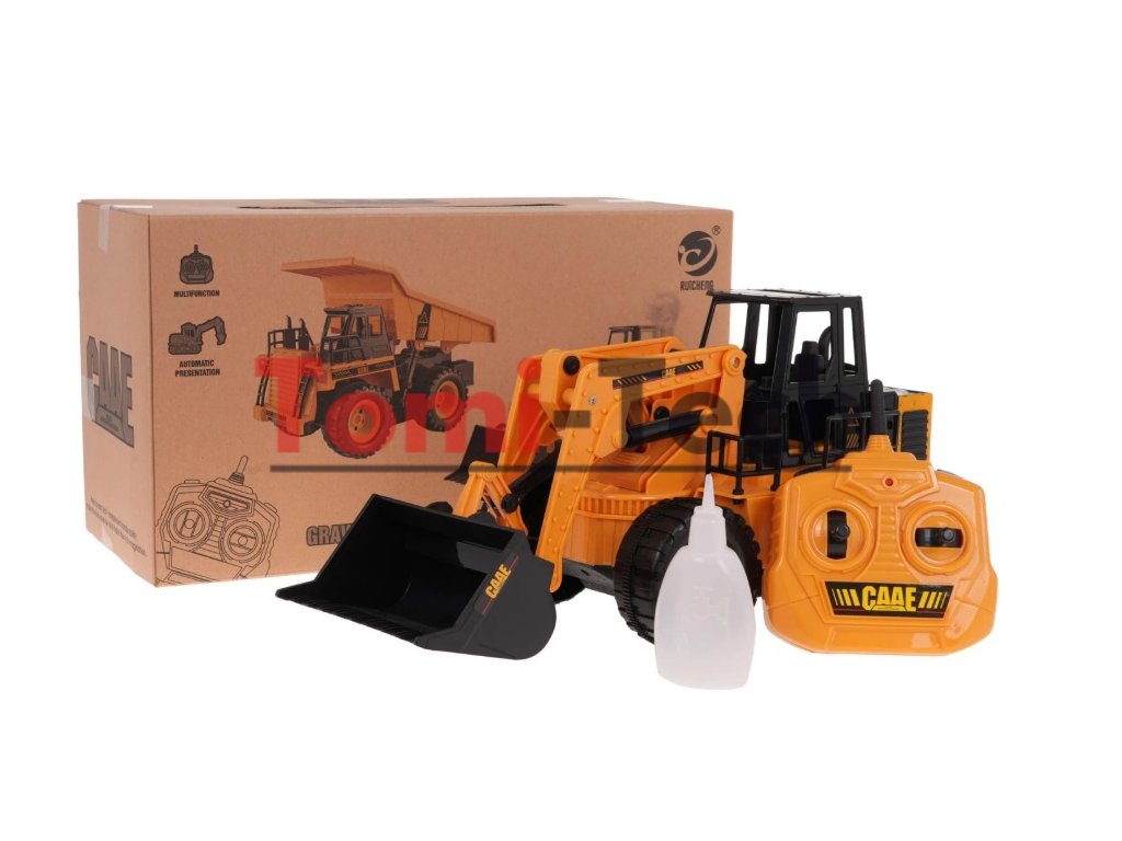 Diaľkovo ovládané stavebné vozidlo s funkciou dymu pre deti od troch rokov. Vozidlo sa pohybuje všetkými smermi a má pohyblivé prvky, ako je zdvíhaná a spúšťaná lyžica a funkcia dymu. Dym sa uvoľňuje pri naplnení nádrže v zadnej časti buldozéra. Vozidlo je napájané 4 batériami typu AA 1,5 V (nie sú súčasťou balenia), zatiaľ čo diaľkové ovládanie je napájané 2 batériami typu AA 1,5 V (nie sú súčasťou balenia).