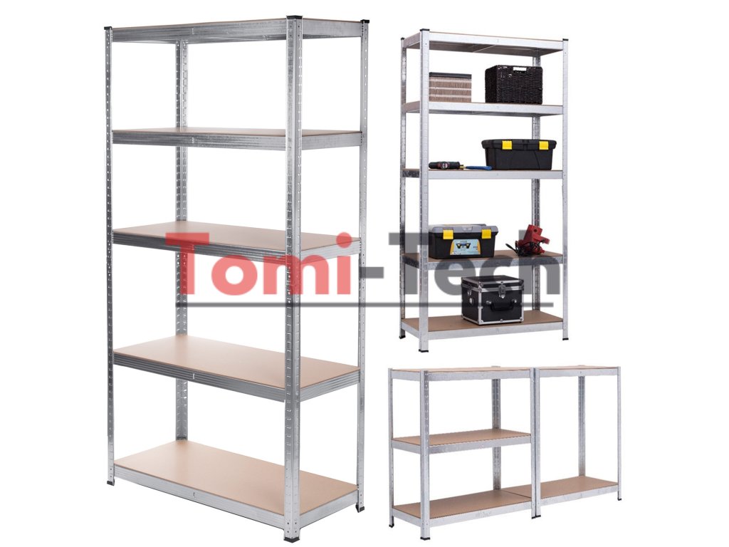 Esteticky príjemný a funkčný kovový regál, ideálny na udržiavanie poriadku v rôznych priestoroch, ako sú pivnice, garáže, dielne, sklady a obchody.