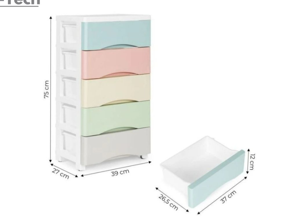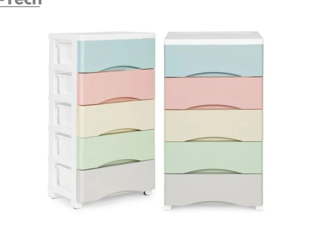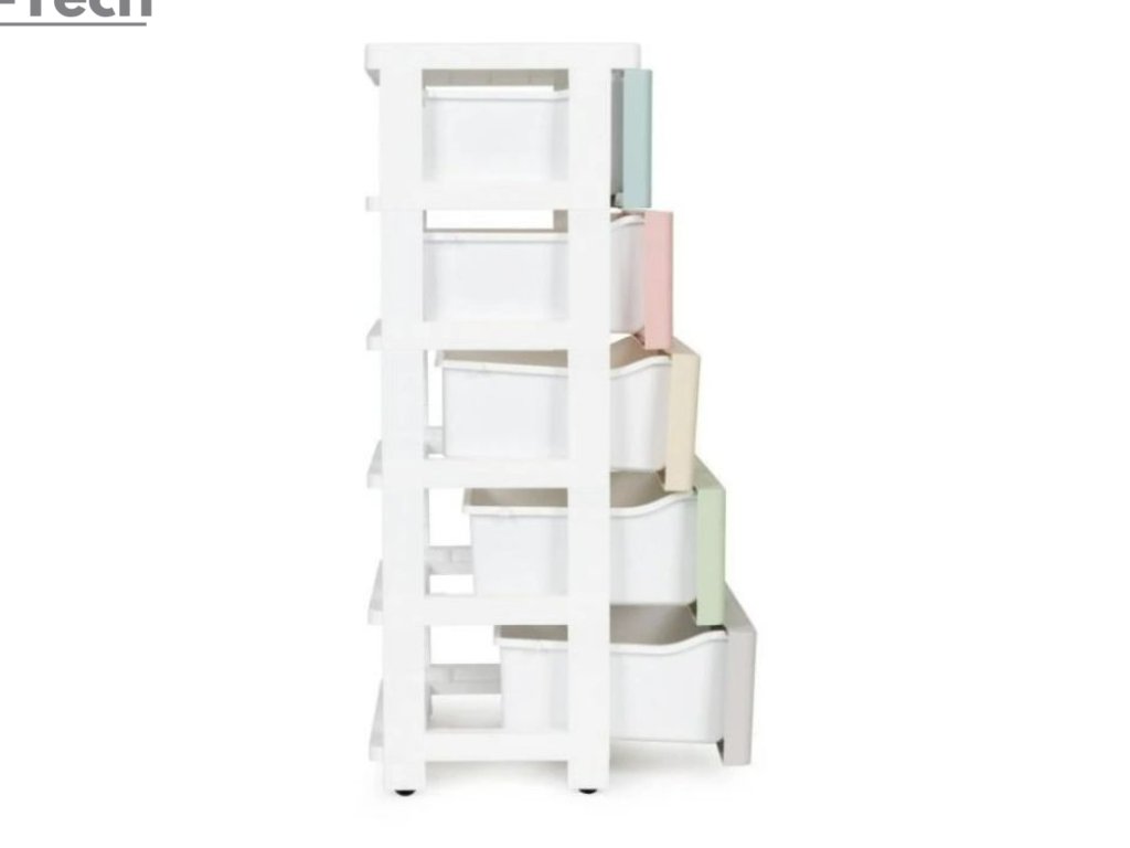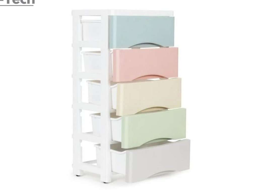 Regál na kolieskach je skvelý kus nábytku do každej domácnosti, ktorý efektívne využijete. Regál s piatimi policami a s pevnou plastovou konštrukciou, využijete ako regál do detskej izby, alebo na odkladanie rôznych kozmetických, dekoračných predmetov. Ide o plastový regál vybavený piatimi policami, ktorý poskytuje dostatok priestoru na odkladanie rôznych kúpeľňových predmetov, ako je kozmetika, uteráky a hygienické potreby. Polička je vyrobená z odolného plastu a má stabilnú konštrukciu s piatimi zásuvkami vybavenými pohodlnými madlami a zámkami proti vypadnutiu. Nohy s kolieskami uľahčujú presúvanie police, aj keď je plne naložená.