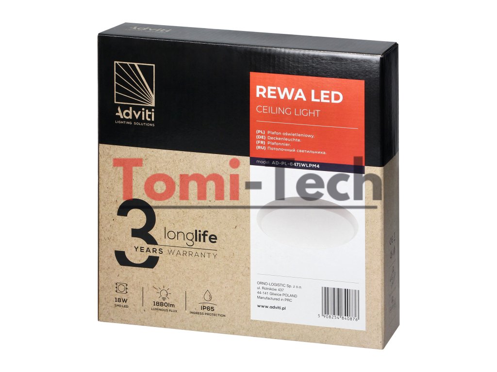 REWA LED 18W, stropné svietidlo, 1880lm, IP65, 4000K, tienidlo z PCDodatočné parametre