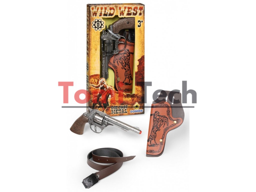KOVOVÝ REVOLVER GONHER 201/0 METAL COWBOY NA 8 NÁBOJOV S PUZDROM