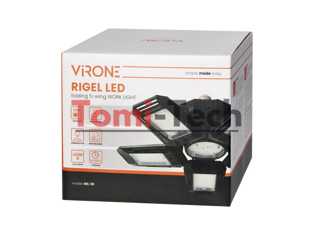 RIGEL LED skladacia dielenská lampa, 5-listová, E27 55W, 6500K, 4950lmDodatočné parametre