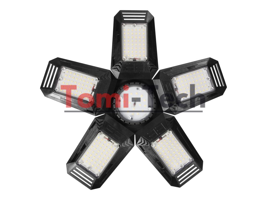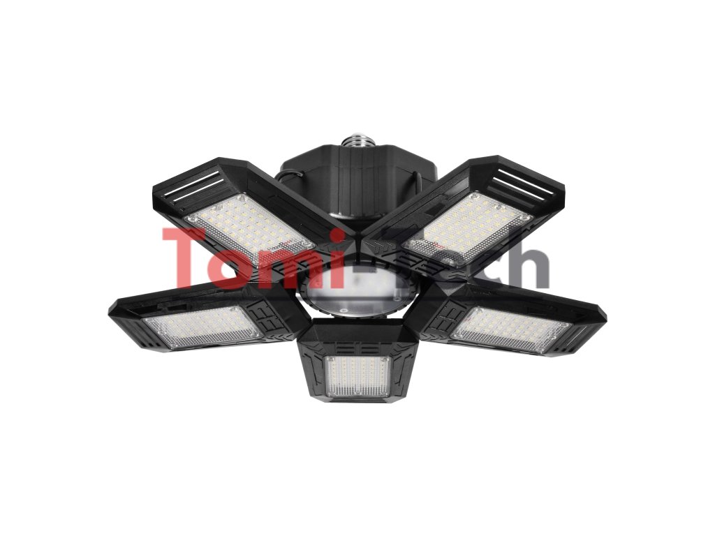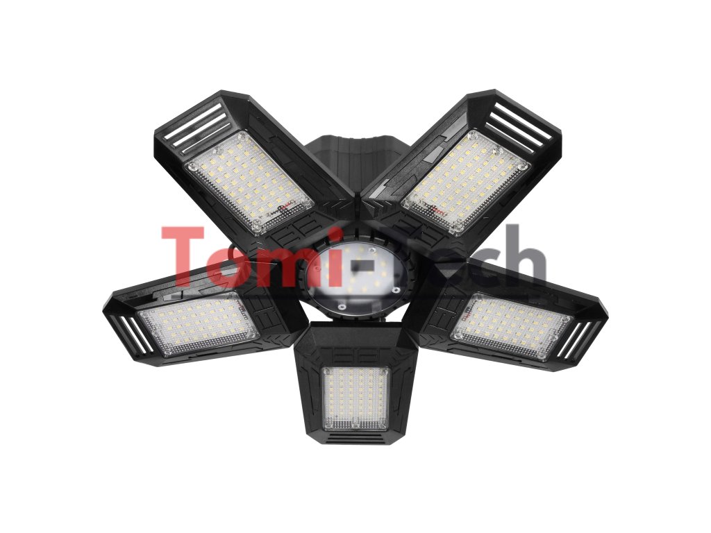 RIGEL LED skladacia dielenská lampa, 5-listová, E27 55W, 6500K, 4950lm