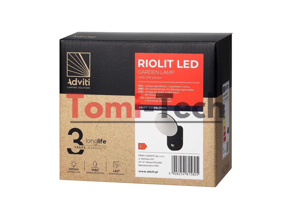 Toto záhradné svietidlo sa vyznačuje hliníkovým puzdrom s jednoduchým, no elegantným dizajnom, ktorý nielen efektívne osvetlí akýkoľvek priestor alebo budovu, ale aj umocní jej estetický vzhľad. Svietidlo sa pýši vysokým stupňom vodotesnosti, vďaka čomu je ideálne na fasády budov, ploty, terasy, altánky alebo vchody do domov či kancelárskych budov. Moderné SMD LED diódy zaručujú vysokú energetickú účinnosť a dlhú životnosť. Riolit má zabudovaný snímač pohybu, ktorý ďalej pomáha šetriť elektrinu tým, že osvetlenie zapína iba v prípade potreby. Svietidlo je vybavené matným polykarbonátovým difúzorom pre rovnomerné rozloženie svetla.Dodatočné parametre