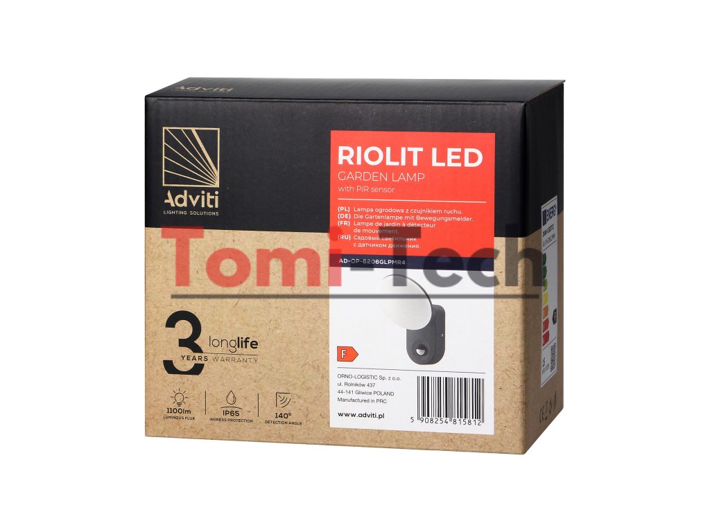 Toto záhradné svietidlo sa vyznačuje hliníkovým puzdrom s jednoduchým, no elegantným dizajnom, ktorý nielen efektívne osvetlí akýkoľvek priestor alebo budovu, ale aj umocní jej estetický vzhľad. Svietidlo sa pýši vysokým stupňom vodotesnosti, vďaka čomu je ideálne na fasády budov, ploty, terasy, altánky alebo vchody do domov či kancelárskych budov. Moderné SMD LED diódy zaručujú vysokú energetickú účinnosť a dlhú životnosť. Riolit má zabudovaný snímač pohybu, ktorý ďalej pomáha šetriť elektrinu tým, že osvetlenie zapína iba v prípade potreby. Svietidlo je vybavené matným polykarbonátovým difúzorom pre rovnomerné rozloženie svetla.Dodatočné parametre
