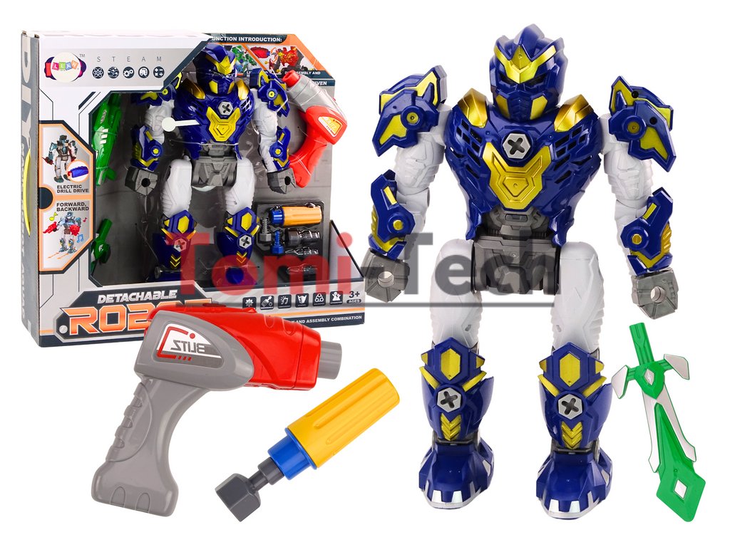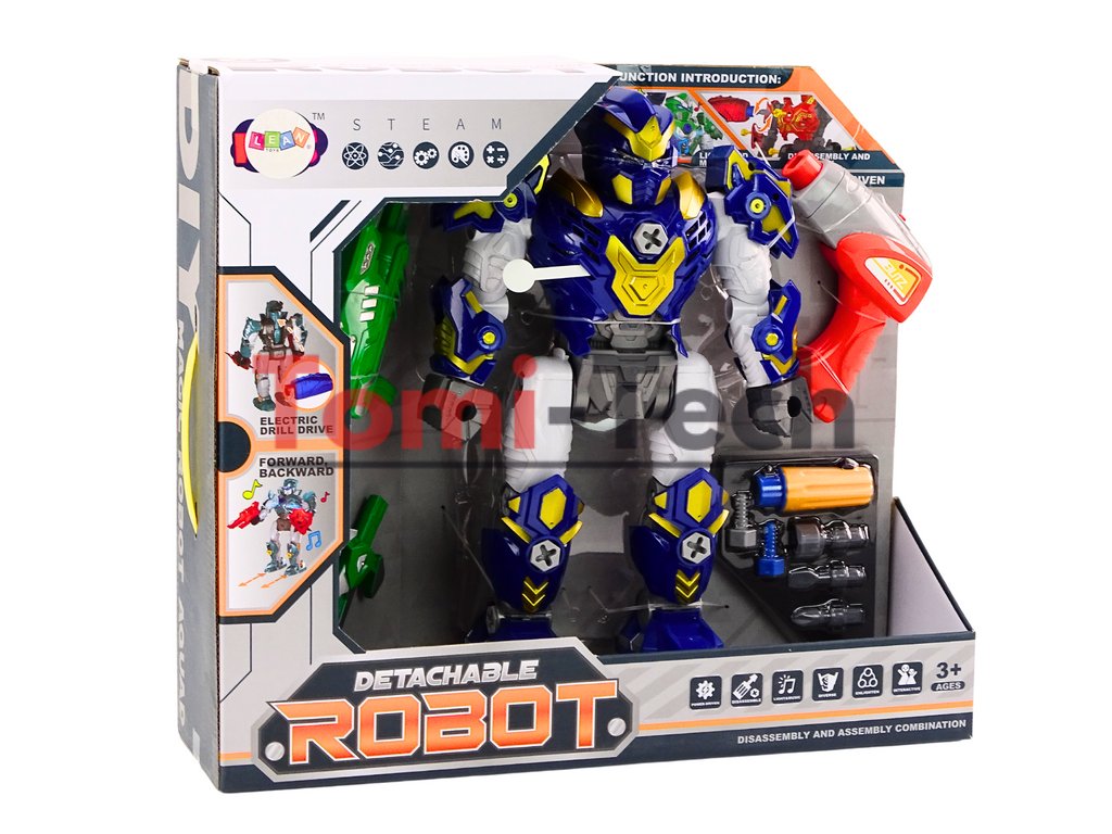 Tmavomodrý robotický skrutkovač je **pokročilá hračka**, ktorá kombinuje **vzdelávanie** so **zábavou**. Vďaka schopnosti odskrutkovať a skrutkovať prvky robota si deti môžu rozvíjať **manuálne zručnosti**, **motorickú koordináciu** a **logické myslenie**. Robot je vybavený **zbraňou**, **vŕtačkou**, **skrutkovačom** a **svetelnými a zvukovými efektmi** a poskytuje výnimočnú zábavu.