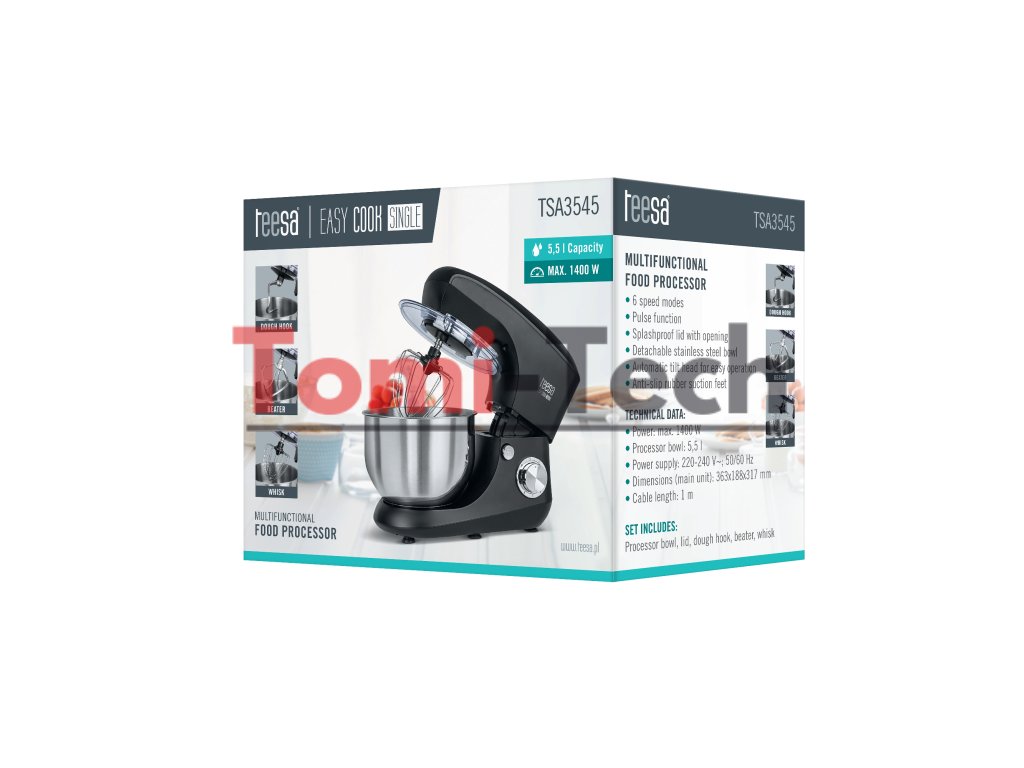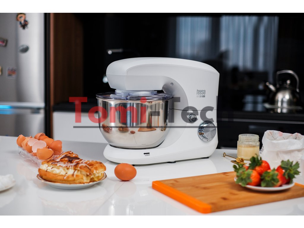 Neplytvajte energiou miesením hmoty alebo cesta ručne. Nechajte nás pomôcť vám. Teesa EasyCook SINGLE má silu splniť všetky vaše očakávania. Vyberte si jeden z troch nadstavcov, ktoré sú súčasťou sady? hnetací hák, metlička alebo mixér a motor s výkonom 1400 W vám zaberie miesenie aj tých najnáročnejších jedál len chvíľku.