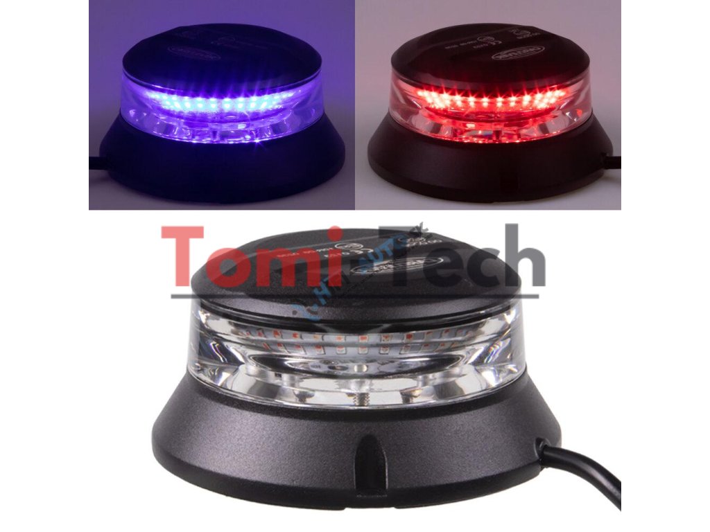 Profesionálny robustný modro - červený LED maják s čiernym hliníkovým obalom a výrazným výstražným efektom . Určený na pevnú montáž pomocou skrutiek .