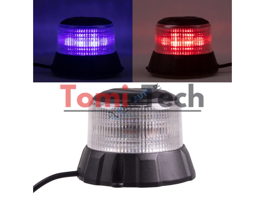 Profesionálny robustný modro - červený LED maják s čiernym hliníkovým obalom a výrazným výstražným efektom . Určený na pevnú montáž pomocou skrutiek .